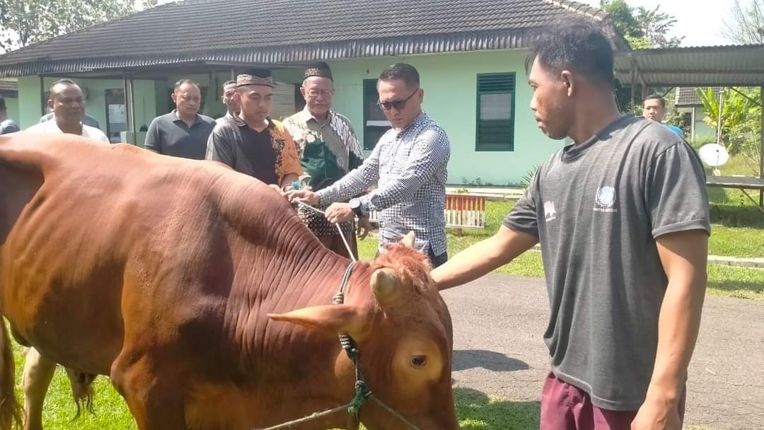 Didampingi Kasdim Pati Mayor Cpl Ari Eko Prasetio, S.T beserta Perwira Staf Kodim Pati, Dandim menyerahkan hewan qurban berupa 1 ekor sapi kepada panitia qurban Yonif 410/Alugoro Bapak Mohammad Kamsi bertempat di Kompi Senapan C Batalyon Infantri 410/Alugoro Pati. Senin, (17/06/2024).