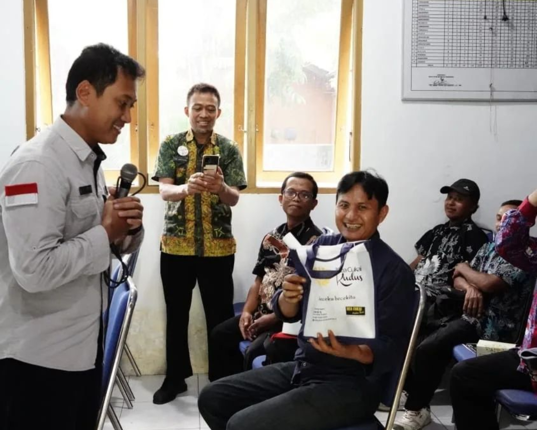 Turut hadir Camat Tambakromo Mirza Nur Hidayat, perwakilan Bea Cukai Kudus, dan Kepala Diskominfo Pati Ratri Wijayanto yang diwakilkan oleh Kepala Bidang (Kabid) Informasi Komunikasi dan Publikasi (IKP) Ida Istiani.