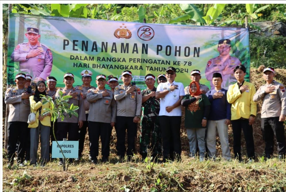 Kapolres Kudus, AKBP Dydit Dwi Susanto menyebut, bahwa kegiatan penanaman pohon serentak ini merupakan rangkaian peringatan hari bhayangkara ke 78.