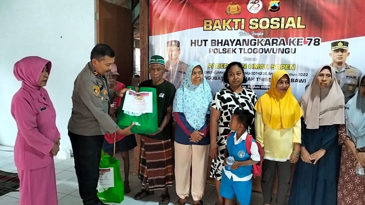 SUARA PATI NEWS. PATI – Polsek Tlogowungu, Polresta Pati gelar kegiatan Bhakti Sosial (Bhaksos) pengobatan massal Thibbun Nabawi dari padepokan omah Sapen dan Dokkes Polresta Pati serta pemberian paket sembako dalam rangka HUT Bhayangkara ke-78, Sabtu (22/6/2024).