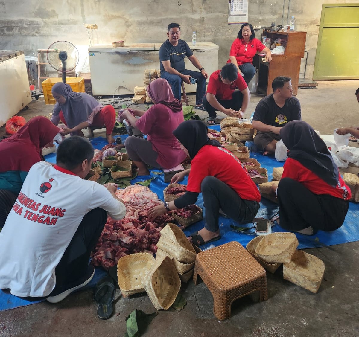 Lima ekor sapi yang sudah dipotong kemudian dikemas didalam besek, untuk kemudahan dibagikan kepada seluruh kader se-Kabupaten Pati, warga sekitar kantor DPC yakni di Desa Sidoharjo, Kecamatan Pati, serta kaum dhuafa yang membutuhkan.