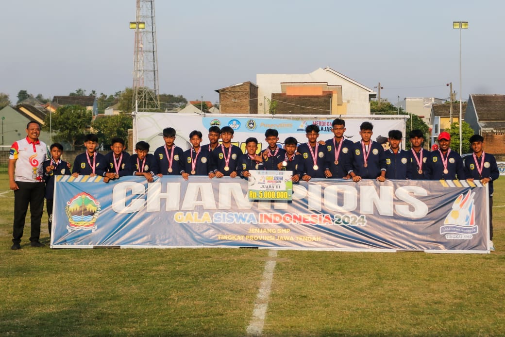 Suarapatinews.com – SEMARANG — Tim Gala Siswa Indonesia (GSI) Kabupaten Pati akhirnya tampil sebagai juara 3 bersama tim Kabupaten Cilacap pada ajang GSI Provinsi Jawa Tengah 2024. Kekalahan 0-1 dari tim Kabupaten Kudus pada laga semifinal di lapangan Balasuga, Semarang, Jumat (19/7/2024) membuat impian Kabupaten Pati untuk menggapai final sirna.