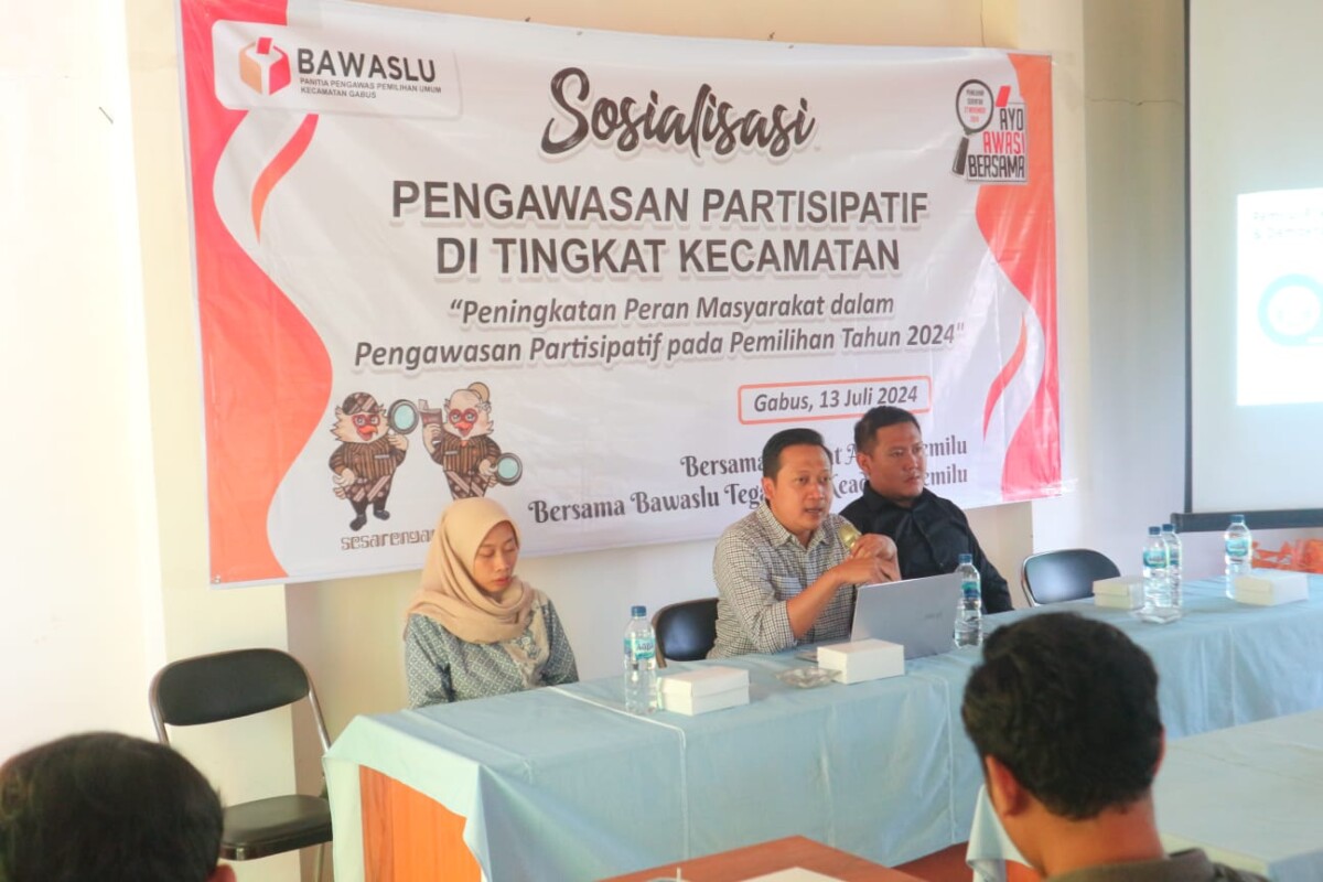 Dalam sosialisasi partisipatif dihadiri oleh ketua Panwascam Gabus Didik Frendi Herianto, S.M beserta anggota Airlangga Gangga Caraka, S.H dan Mohammad Tomy Wiharto, S.IP., Camat Gabus Suranta, S.STP, M.Si juga Kapolsek dan Danramil.