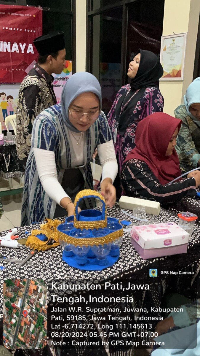 Suarapatinews. Pati – Mahasiswa Kuliah Kerja Nyata (KKN) dari Institut Pesantren Mathali’ul Falah (IPMAFA) kelompok KKN Abhinaya mengadakan pelatihan pembuatan kerajinan dari sampah anorganik, khususnya botol plastik, di Balai Desa Pajeksan, selasa tgl (20/08/24).