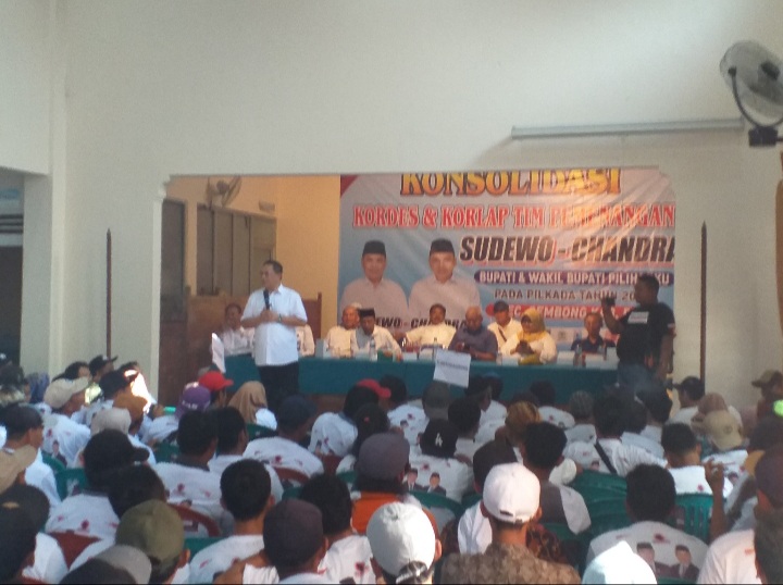 “Konsolidasi ini digelar untuk memenangkan pasangan bakal calon Bupati dan Wakil Bupati Pati Sudewo-Candra, acara dihadiri dari semua tim pendukung, tim relawan, seluruh korcam, kordes dan korlap se-Kecamatan Gembong.