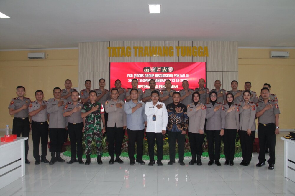 Diskusi ini menjadi bagian dari rangkaian praktik kerja profesi peserta didik Sespimma Polri angkatan ke-73 Pokjar III.
