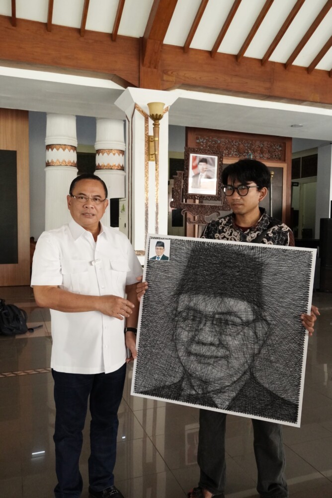 Lukisan tersebut merupakan hasil tangan Ridha Pratama, seniman muda yang turut hadir bersama Bu Inggi dari Sambirejo.