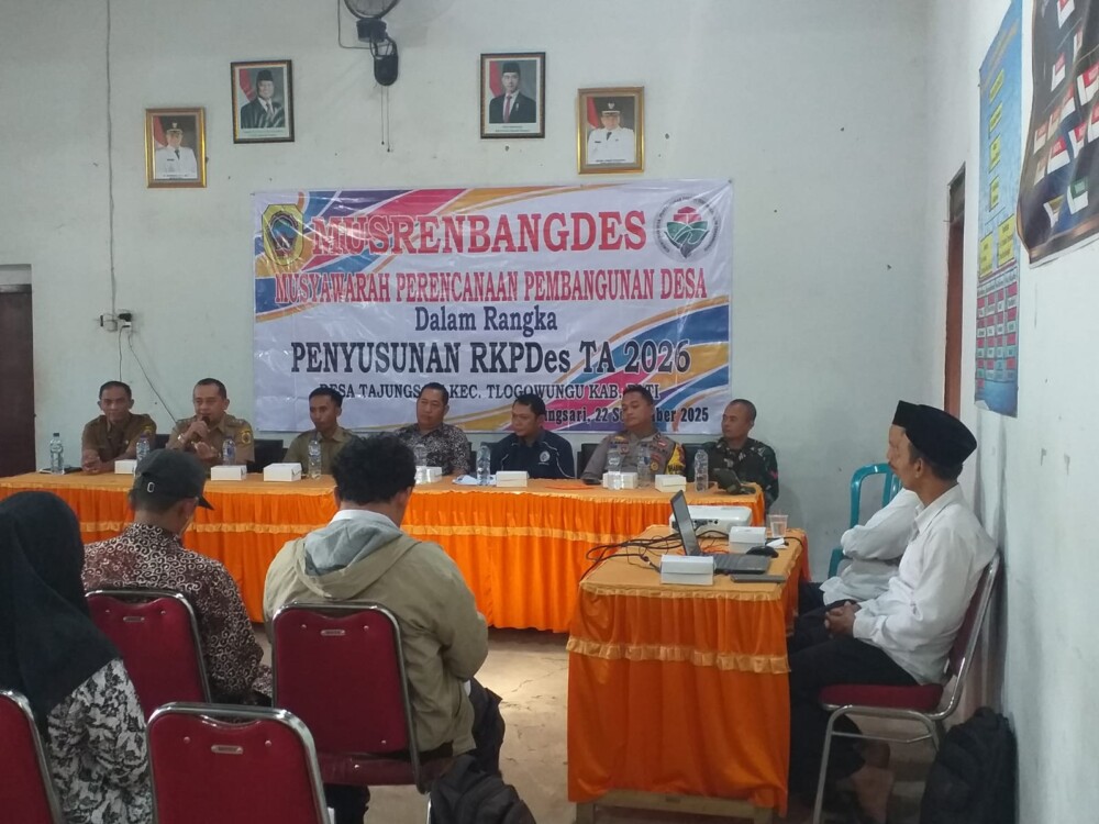 PATI, SUARAPATINEWS.com – Pemerintah Desa Tajungsari, Kecamatan Tlogowungu, menggelar Musyawarah Perencanaan Pembangunan Desa (Musrenbangdes) dalam rangka penyusunan Rencana Kerja Pemerintah Desa (RKPDes) Tahun Anggaran 2026, Senin (22/9/2025).