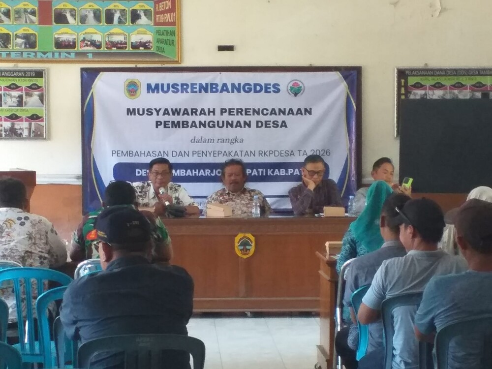 PATI, SUARAPATINEWS.com – Pemerintah Desa Tambaharjo, Kecamatan Pati, menggelar Musyawarah Perencanaan Pembangunan Desa (Musrenbangdes) dalam rangka pembahasan serta penyepakatan Rencana Kerja Pemerintah Desa (RKPDes) Tahun Anggaran 2026, Selasa (23/9/2025).