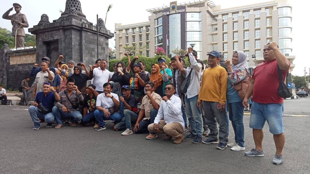 Tampak, ratusan orang beranjak pergi setelah mendapatkan hasil diskusi dengan Ditreskrimum Polda Jateng menyimpan harapan kebebasan rekan-rekannya yang ditahan di Polda Jateng. (red)