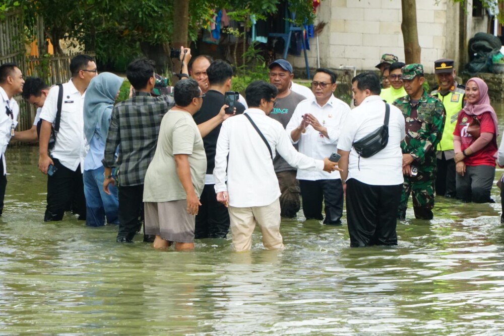 PATI, SUARAPATINEWS.com – Plt Bupati Pati, Risma Ardhi Chandra, mendampingi Plh Gubernur Jawa Tengah, Taj Yasin, meninjau sejumlah titik banjir di wilayah Kecamatan Juwana.