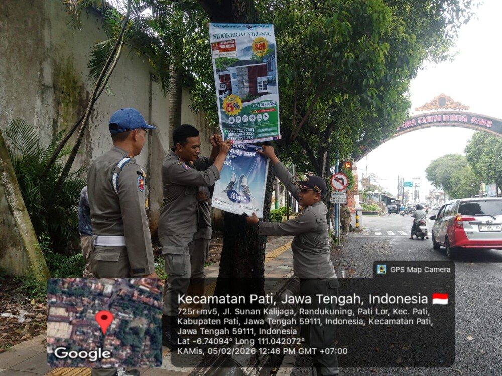 PATI, SUARAPATINEWS.com – Satuan Polisi Pamong Praja (Satpol PP) Kabupaten Pati, Jawa Tengah, menertibkan reklame yang menyalahi peraturan di wilayah Kota Pati, Kamis (5/2/2026) Penertiban ini dilakukan sebagai upaya menciptakan lingkungan yang tertib, rapi, dan indah bagi masyarakat.