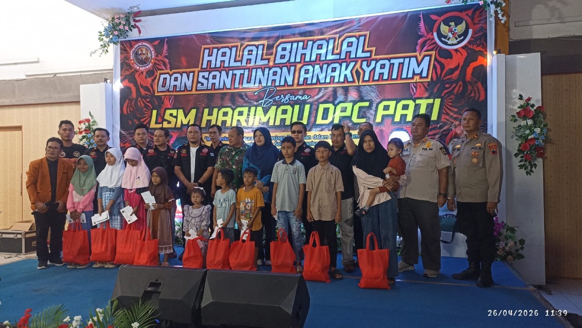 PATI, SUARAPATINEWS.com – Bertempat di Ruang Pragola, Kecamatan Margorejo, LSM Harimau Dewan Pimpinan Cabang (DPC) Pati menggelar kegiatan halal bihalal sekaligus santunan anak yatim, Minggu (26/4/2026).
